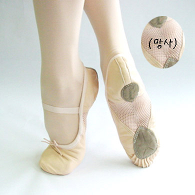 슈즈 바닥 중앙 부분이 통기성이 뛰어난 망사로 된 기능성 발레슈즈이기에,