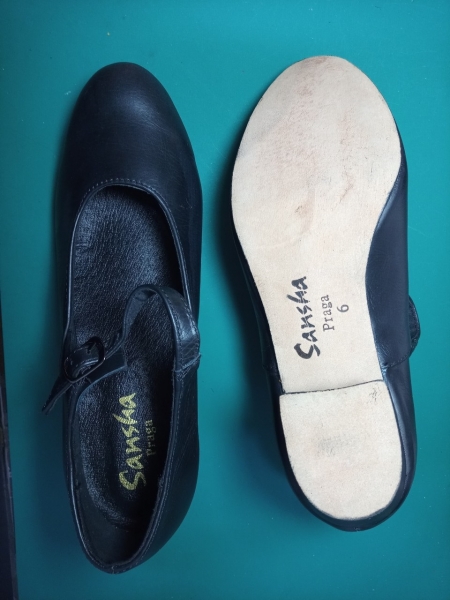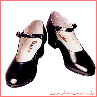 산샤 여성용 캐릭터 슈즈입니다.굽이 가죽으로 둘러쌓여 있습니다."Praga" CL10- Buckle strap closing. - Side stitching. -