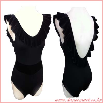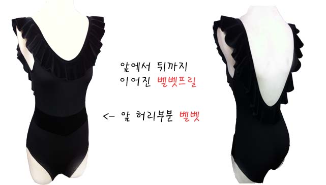 앞에 네크라인부터 뒤에 파여진 라인까지 벨벳프릴이 달려있는 레오타드입니다^^