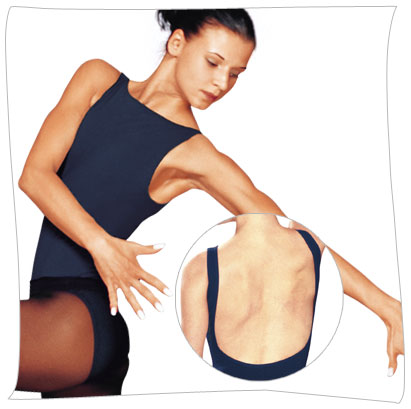 - Tank leotard. With straight neck. Low scoop back.