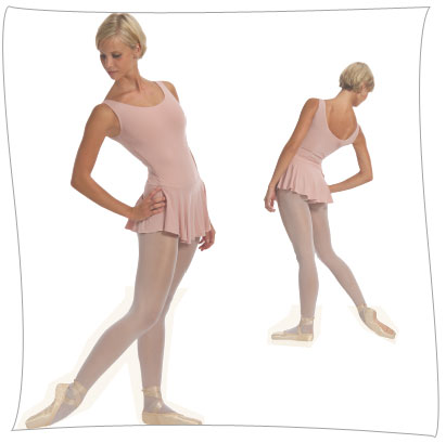 - Sleeveless leotard- Attached skirt- Bra lining- Tactel
