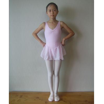 *여자 어린이용 연습복으로, 발레를 비롯한 무용 연습용 옷으로 가장 널리 쓰이는 디자인.