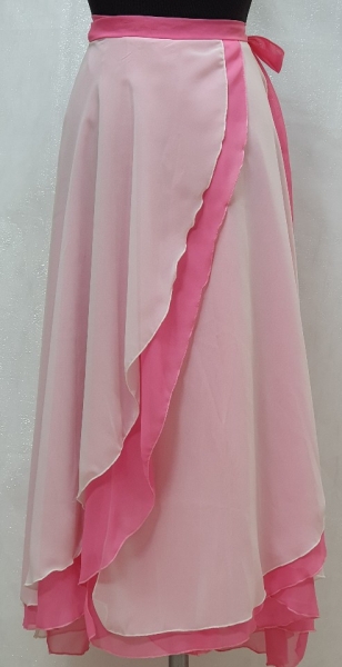 연핑크와 진핑크 투톤으로 이루어진 7부기장의 쉬폰 풀치마입니다~현대무용,한국무용 등... 연습복은 물론 공연복으로도 인기 많은 제품입니다~