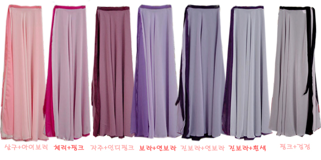 10부 길이의 투톤 쉬폰 풀치마입니다.쉬폰이라서 살짝살짝 비치는 느낌이구요~총길이는 허리 포함 99cm 입니다.