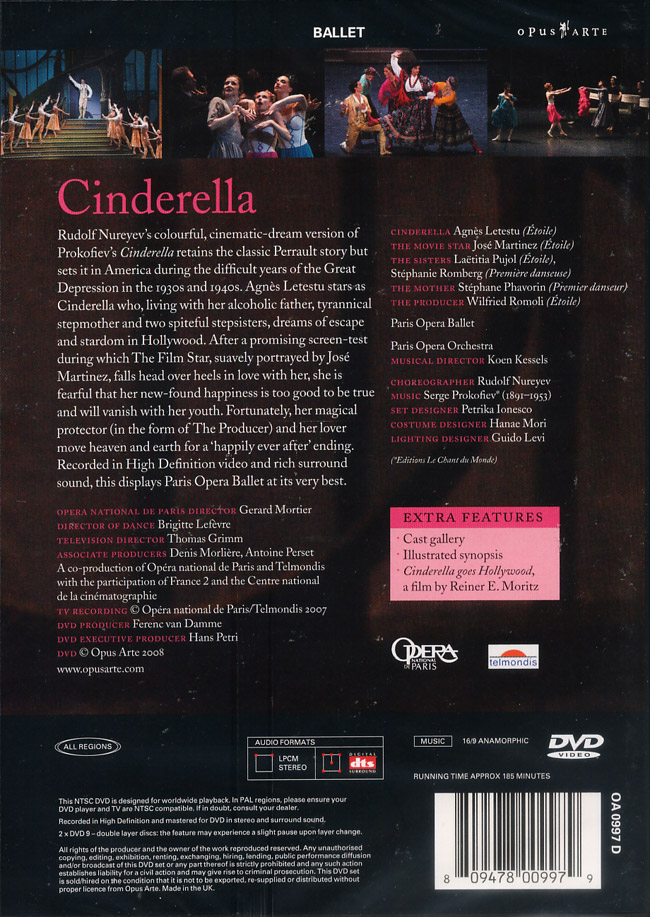 누레예프의 [신데렐라]는 1987년 스튜디오 촬영자료가 비디오로 나왔지만 아직 DVD로 재발매되지 않았다. 따라서 2008년 4월 파리 오페라 발레의 본 실황은 아주 귀중한 자료다. 동 발레단의 가장 우아한 스타 아녜스 레테스튀가 타이틀 롤을 맡았다.
