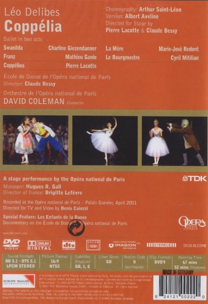 E.T.A 호프만의 동화적 소설에 기초한 발레 [코펠리아]는 사람과 똑같은 모습의 나무인형 코펠리아에 반한 프란츠와 이를 질투하는 여자친구 스와닐다의 이야기를 다룬 명작이다. 아르뛰르 생 레옹이 안무했으며 프랑스 낭만발레의 마지막 자존심으로 불린다. 이 DVD는 아직 파리 오페라 발레학교에 재학 중인 학생들의 공연을 담았다. 하지만 17세 미만의 어린 학생이라고 무시할 것이 아니다. 러시아의 바가노바 발레학교와 더불어 세계최고의 발레 스쿨이라는 자존심을 고스란히 보여주는 훌륭한 영상물이기 때문이다. 게다가 스페셜 피처로 수록된 51분짜리 다큐멘터리에는 파리 오페라 발레학교의 모든 것이 소개되고 있다. 장차 파리 오페라 발레를 이끌 어린 무용수들은 물론이고 파트릭 듀퐁, 엘리자벳 플라텔 등 파리 오페라 발레의 에투왈(주역무용수) 출신으로 지금은 학생을 지도하는 대스타들의 모습도 볼 수 있다.
