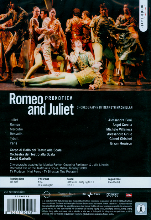 영국의 로열 발레를 주무대로 활동한 케네스 맥밀란(1929~1992)은 슈투트가르트 발레의 존 크랑코와 더불어 연극적인 '드라마 발레'를 개척한 최고 공로자이다. 그의 발레 중에는 '로미오와 줄리엣'과 '마농'이 가장 유명하지만 그밖에도 '마이얼링', '겨울의 꿈'등 독창적인 드라마 발레를 남기고 있다. 프로코피에프의 음악을 사용한 '로미오와 줄리엣'은 1965년 마고트 폰테인과 루돌프 누레예프를 위해 안무한 것이다. 같은 곡에 의한 수많은 안무가 존재하지만 맥밀란의 것이 가장 인기 높은데, 특히 알레산드라 페리(1963~)가 줄리엣을 가장 잘 춘 발레리나라는데 이견이 없을 것이다. 21세(1984)에 로열 발레에서 줄리엣 역으로 스타덤에 오른 페리는 뉴욕의 아메리칸 발레 씨어터로 옮긴 이후에도 줄곧 줄리엣을 추었는데, 본 영상물은 2000년 고향인 밀라노의 라 스칼라 발레에서도 줄리엣을 춘 것이다. 특히 아메리칸 발레 씨어터의 동료이자 세계 최고의 테크니션인 스페인 출신의 젊은 스타 앙헬 코레야(1975~)가 로미오 역으로 초대되었다. 라 스칼라 극장의 보배 에치오 프리제리오와 프랑카 스콰르치아피노가 각각 무대와 의상 디자인을 맡아 로열 발레나 아메리칸 발레 씨어터를 압도하는 볼거리를 만들어낸 것도 주목해야 한다.
