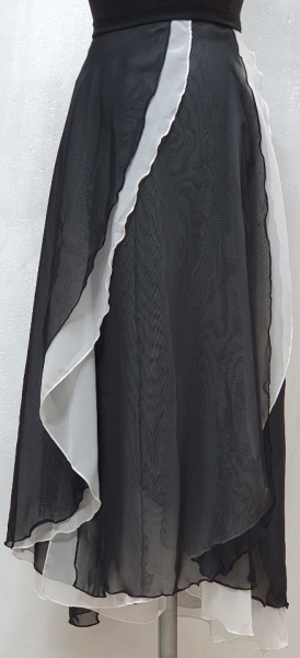 검정과 흰색 투톤으로 이루어진 7부 기장의 쉬폰 풀치마입니다~
