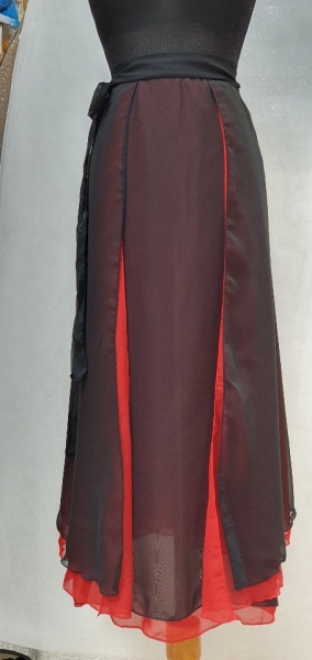 빨강과 검정 투톤으로 이루어진 7부 기장의 쉬폰 풀치마입니다~
