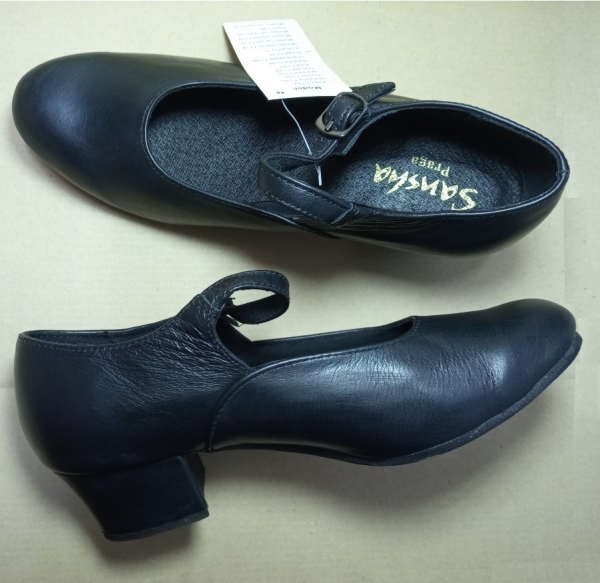 산샤 여성용 캐릭터 슈즈입니다.굽이 가죽으로 둘러쌓여 있습니다."Praga" CL10- Buckle strap closing. - Side stitching. -