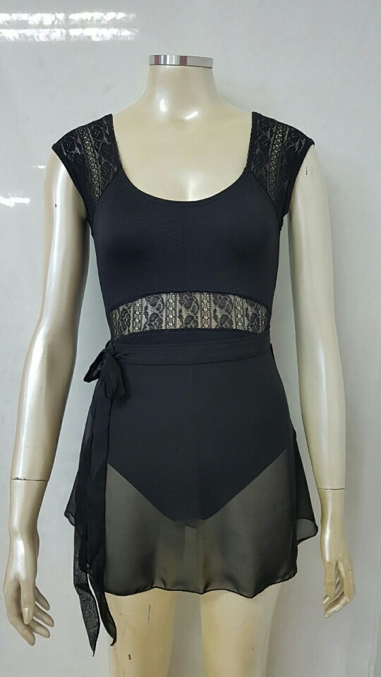 허리 부분과 소매 부분이 레이스 처리되어 있습니다.