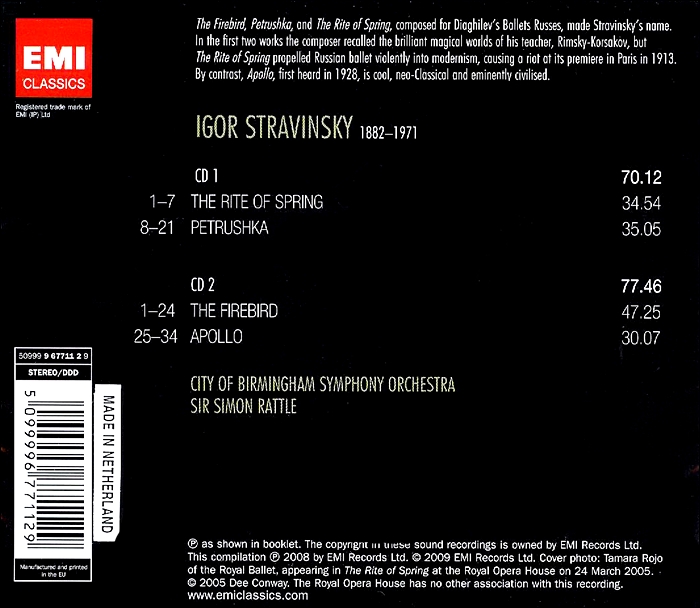 스트라빈스키 : 3대 발레음악 등 - 사이몬 래틀 (2CD)