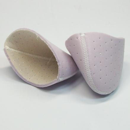 입체적으로 재단하여 발끝에 꼭 맞고, 표면에 구멍을 뚫어 통풍이 좋아 땀이 차지 않음.