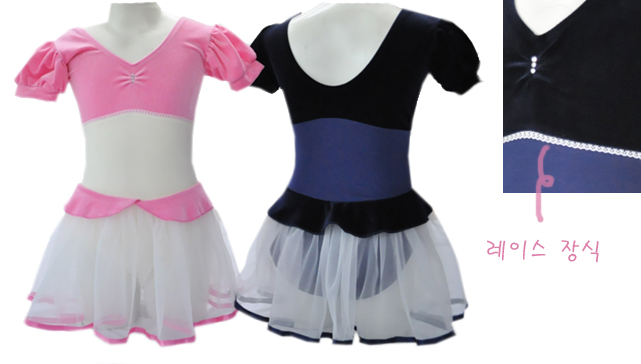 귀여운 퍼프 소매와 치마 부분에 카라가  포인트인 레오타드입니다.